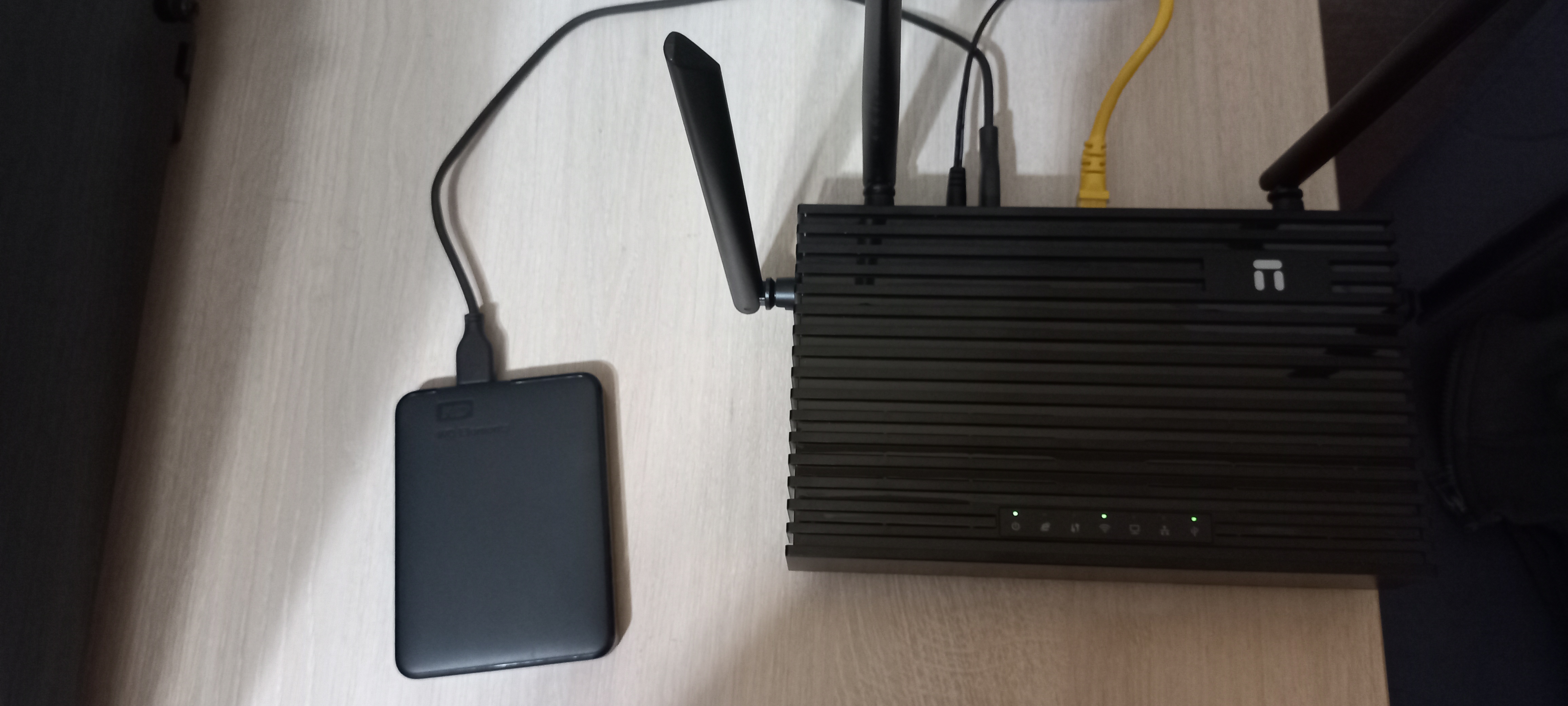 Наличие USB 3.0 в недорогих устройствах встречается не часто, а тем более встроенная поддержка сетевых протоколов. Для теста выбрал протокол SAMBA(SMB) и подключил внешний 2.5 дюймовый жесткий диск к USB порту.