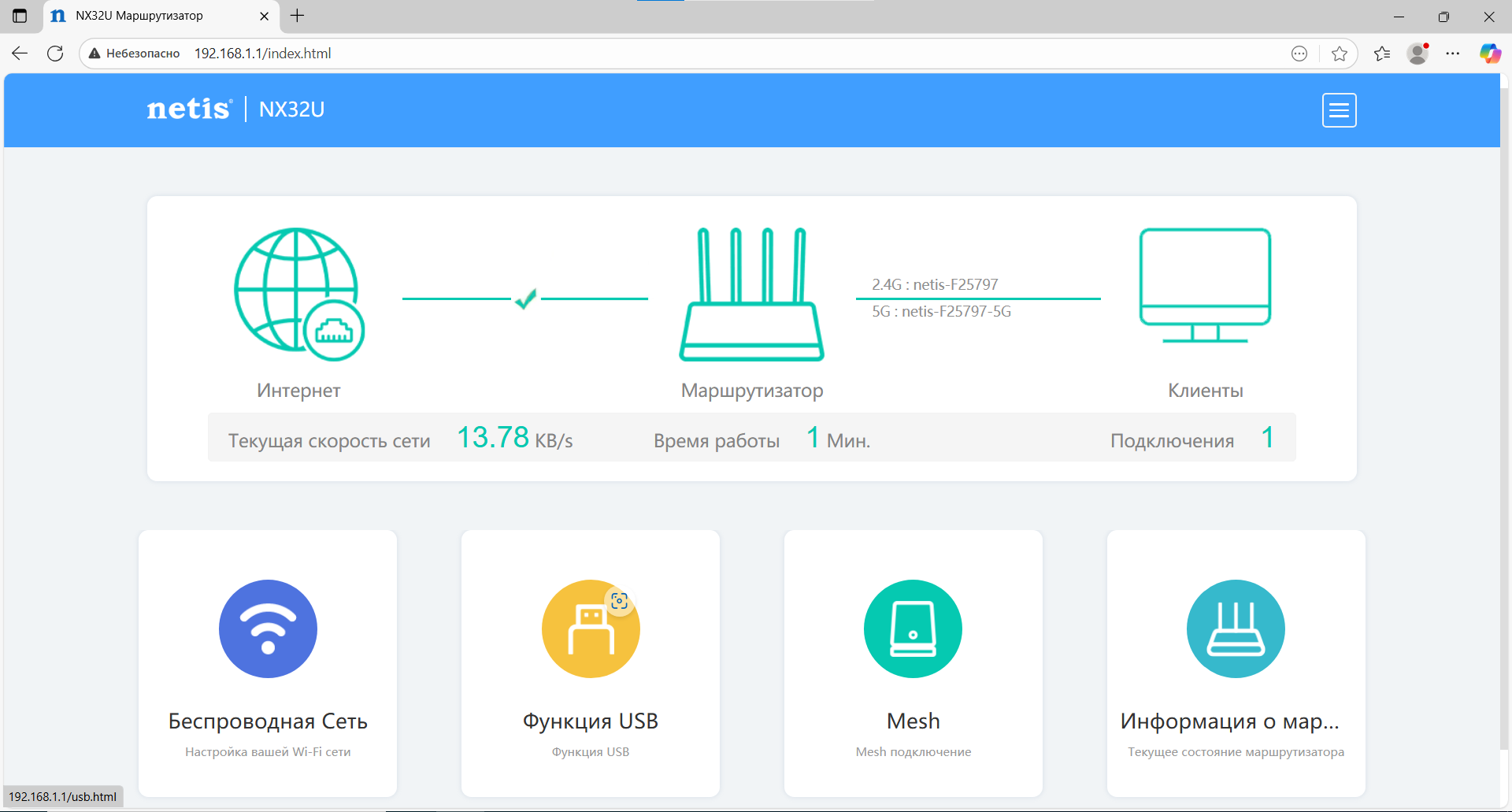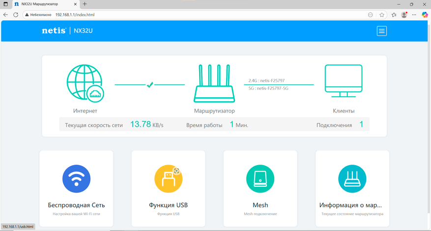 Netis NX32U — практичный и функциональный Wi-Fi 6 маршрутизатор с редкими для своего сегмента особенностями: полноценным USB 3.0, поддержкой SMB/FTP/DLNA, работой с USB-модемами, EasyMesh и гибкими инструментами управления сетью. Аппаратная платформа MT7981B с 256 МБ RAM и 128 МБ Flash обеспечивает стабильную работу всех сервисов. В своей ценовой категории NX32U выглядит как одно из самых универсальных решений.
