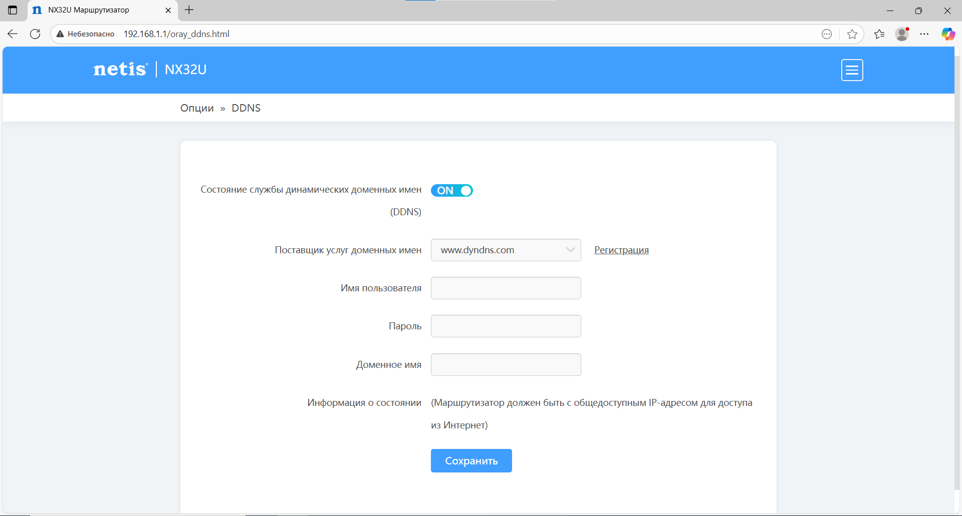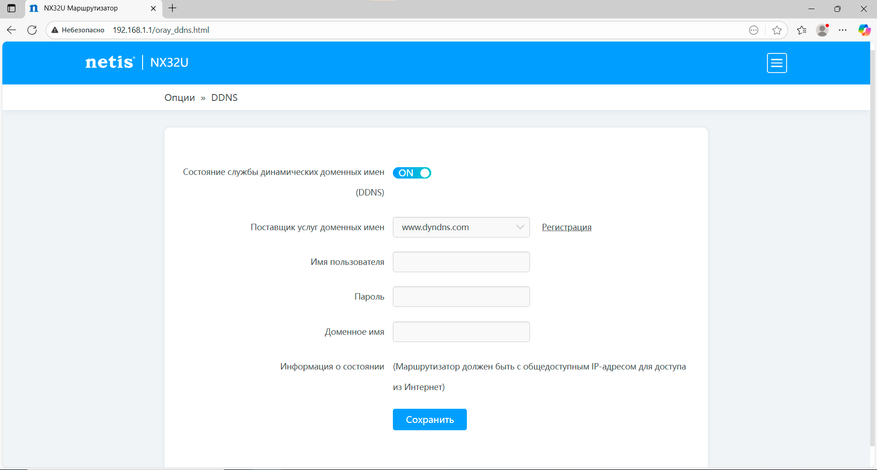 Так же в разделе опций есть настройки проброса портов, настройка динамического DNS (DynDNS, no‑ip), а также инструменты удалённого доступа и диагностики сети.